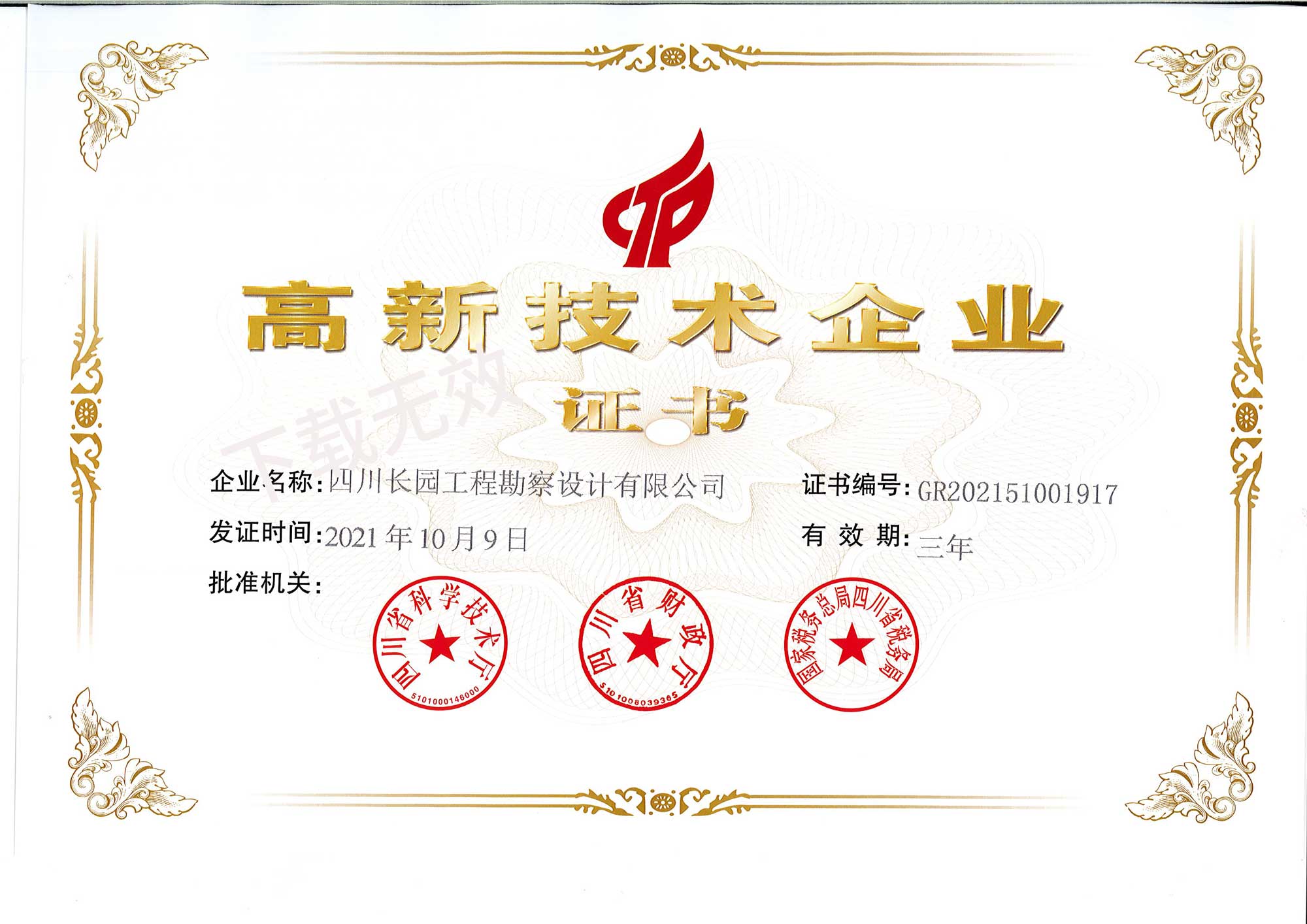 高新技术企业证书