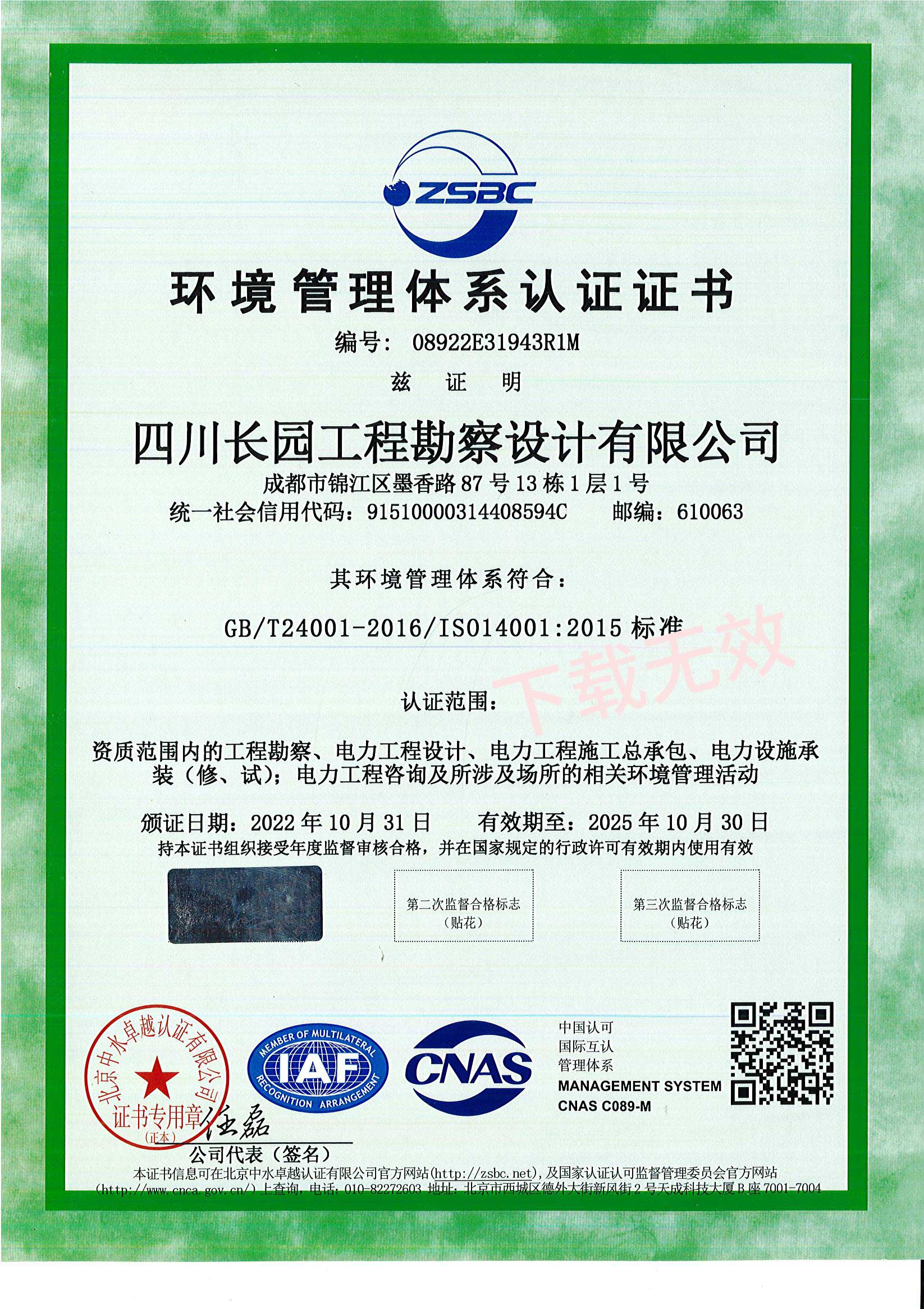 环境管理体系认证证书