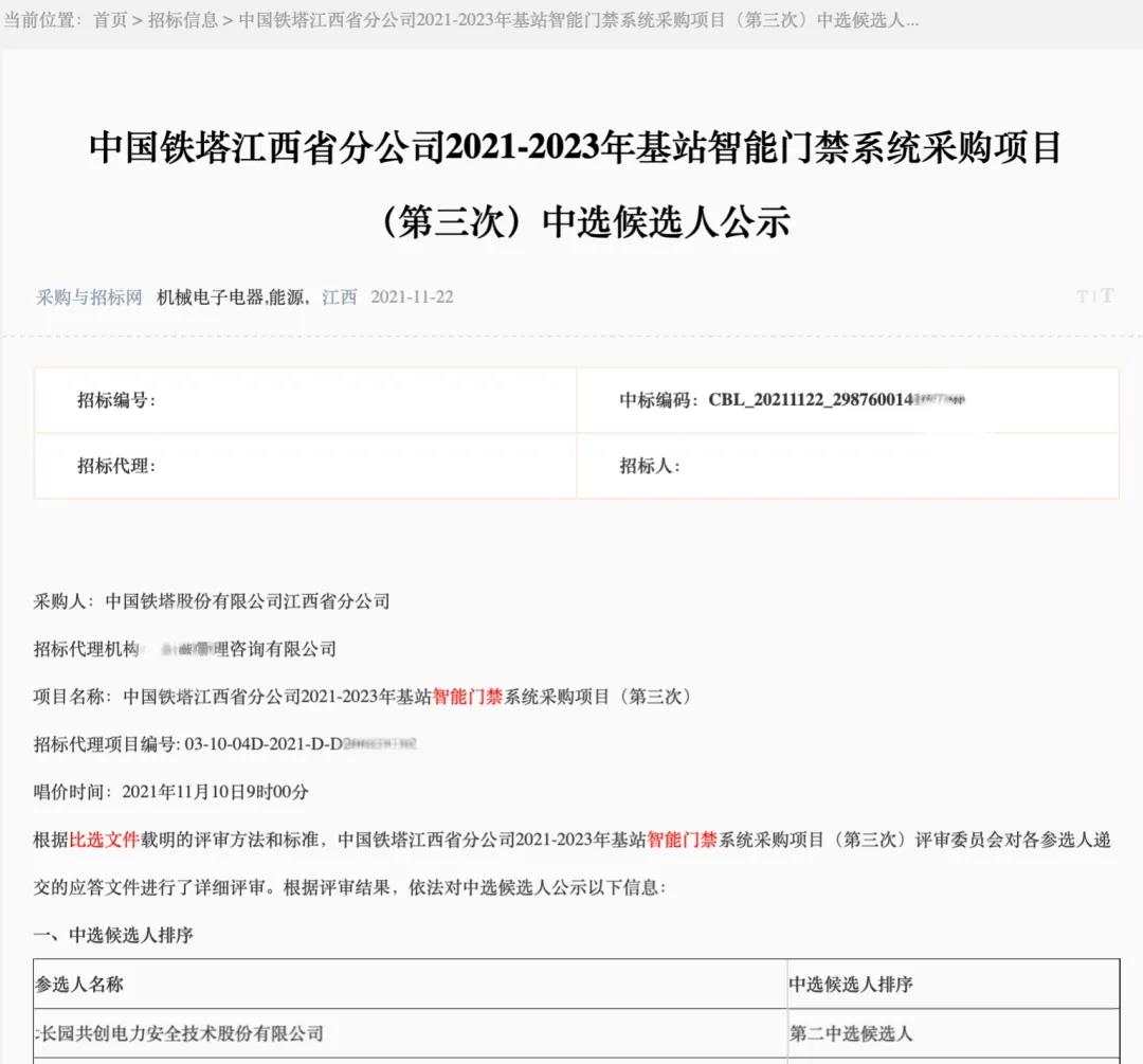新突破 | 3522vip浦京集团共创连续中标安徽、江西铁塔智能门禁锁项目